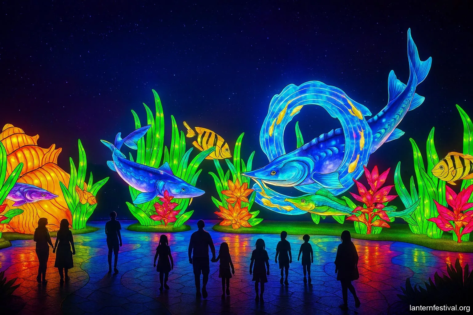 Families visiting the festival can enjoy a diverse array of activities, including a drone light show and close-up encounters with both real and illuminated animals. Visitors like Lauriane and Iliès report being captivated by the event, which offers both visual spectacle and educational insight into animal habitats.